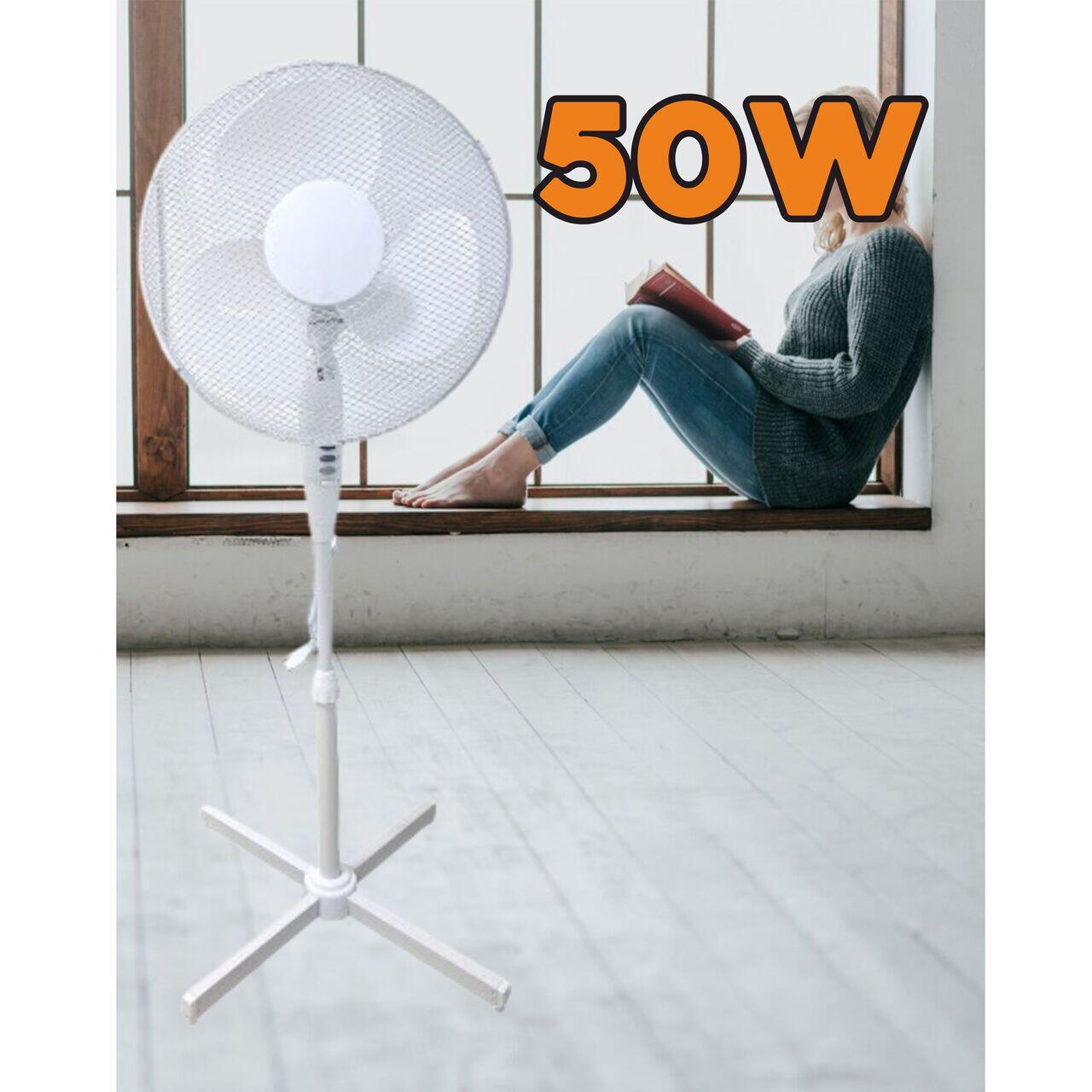 Ventilator cu picior VEN-2, 50W, 3 viteze, diametru 40 inch, înălțime reglabilă, alb