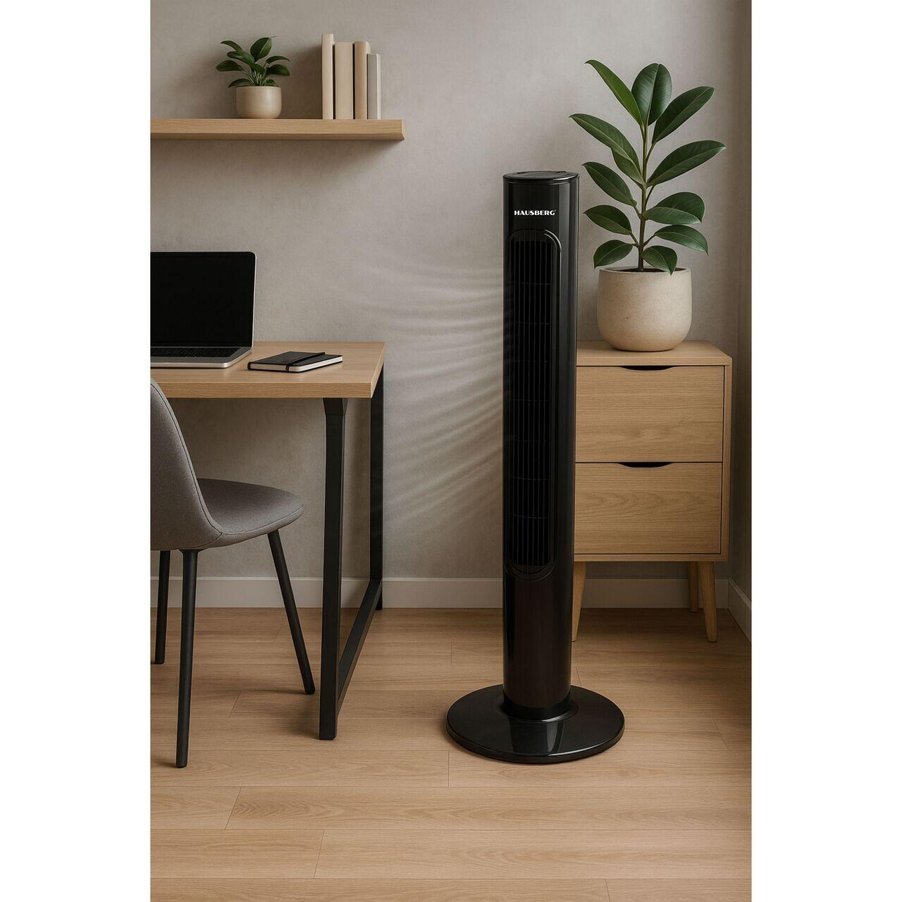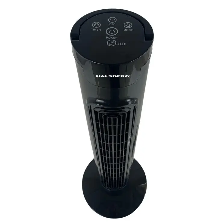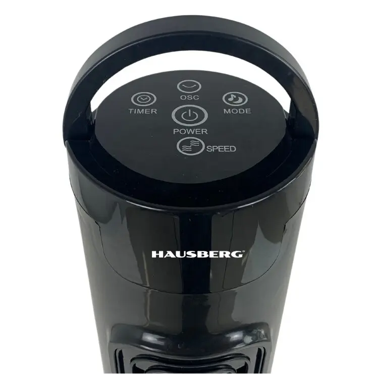 Ventilatorul turn Hausberg HB-5951NG ofera racire eficienta cu 3 moduri de functionare si 3 viteze. Control touch, telecomanda, oscilatie 70° si timer de 7.5 ore.